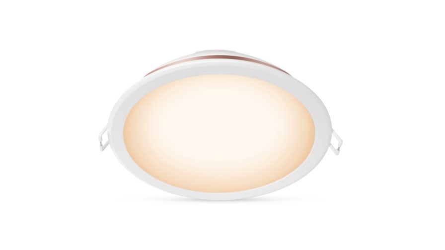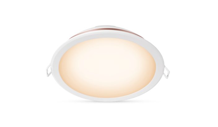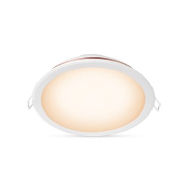 แสงโทนสีเหลืองหรือสีขาวนวลที่ปรับได้ของโคมไฟดาวน์ไลท์ LED แบบฝังขนาด 5 นิ้วอัจฉริยะของ Philips นำไฟอัจฉริยะมาสู่ห้องต่างๆ ในบ้านของคุณ ใช้กับ Wi-Fi ที่มีอยู่ของคุณเพื่อควบคุมด้วยแอพ WiZ หรือเสียงของคุณ
